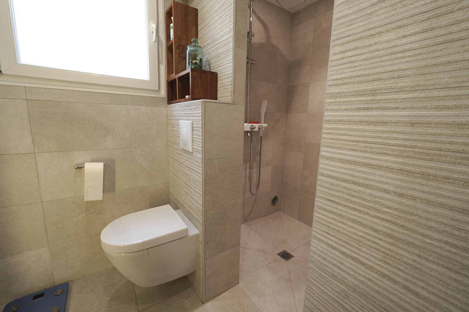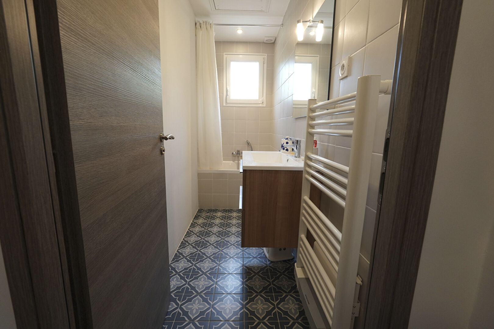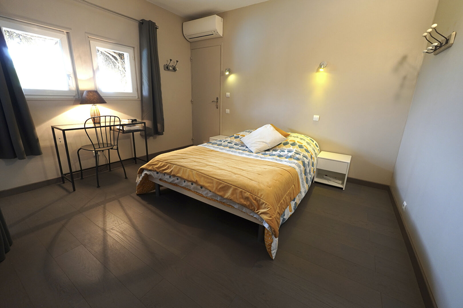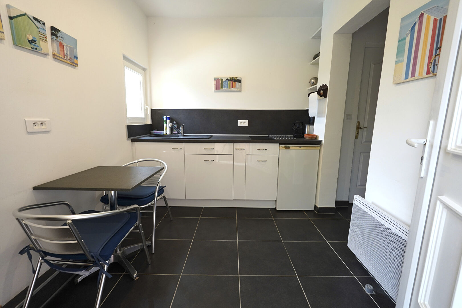 En rez-de-chaussée, un appartement indépendant d'environ 30 m² propose un coin cuisine, une chambre séparée et une salle d'eau, idéal pour accueillir famille et amis ou pour un revenu locatif.