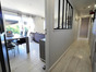 L'entrée se fait par un espace d'environ 6 m², ouvert par une baie vitrée, qui dessert à la fois la maison et la buanderie, offrant une circulation pratique et fonctionnelle.