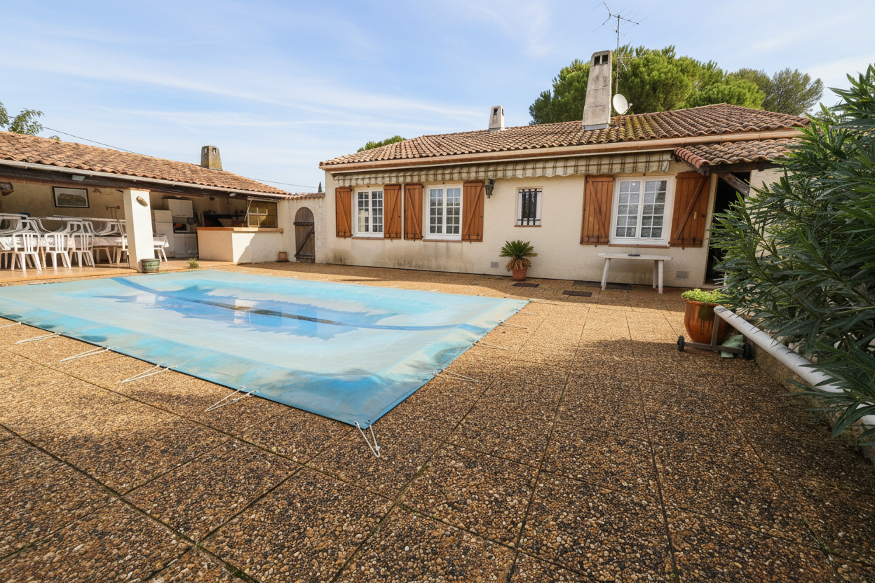 Exclusivité L'IMMOBILIER Autrement vous propose cette spacieuse maison familiale de 141m², 6 chambres sur un terrain plat de 1 515 m² avec piscine, cuisine d'été, terrain de pétanque, garage et remise.